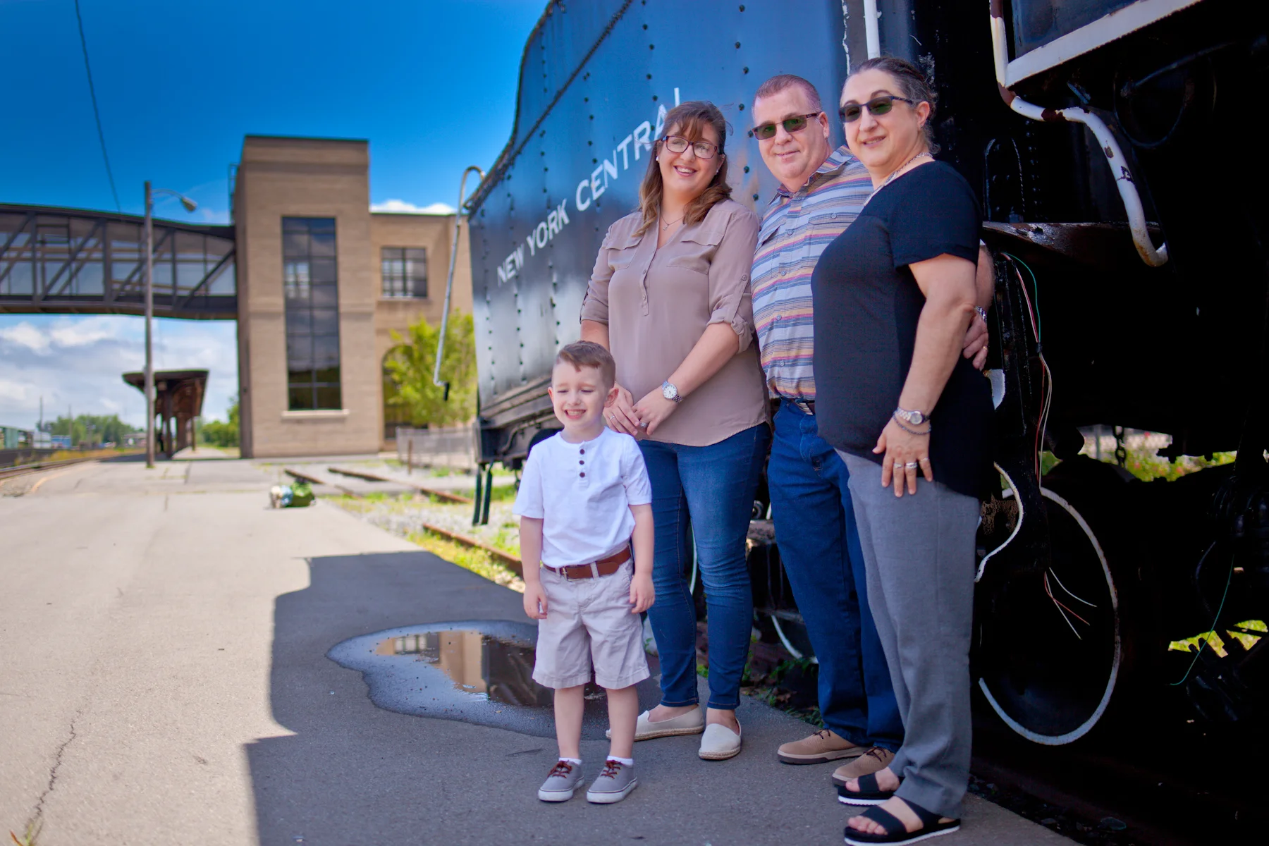 On a nice Saturday afternoon in July, I had the opportunity to photograph my good friend Doug and his family while his daughter Natalie and grandson Conner were visiting from Miami. We were both really looking forward to this shoot, but I was particularly was excited, due to the fact that I spent many of my teenage and young adult years here, attending Notre Dame high school and later Utica College and SUNY Institute of Technology. Utica has amazing architecture, delicious food, and importantly, many great historic locations to take photographs. The Utica Train Station is a location that would make any photographer swoon with delight.